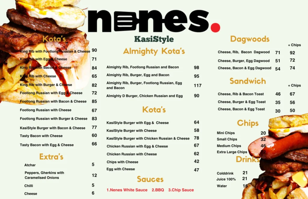From classic Kotas to our loaded Dagwoods, every bite is packed with flavour and proudly crafted in true KasiStyle. Whether you’re craving a full meal or just a quick snack, you’ll find something unforgettable on our menu.